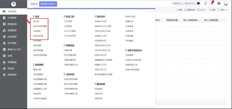 「企企管理云」项目管理为公司提供“报价单—立项申请—项目立项—项目启动单—项目预算单(收入预算、费用预算、预算方案)—应收应付合同—开票申请、发票、收款、费用报销、借款、应付、付款、出差申请”等。