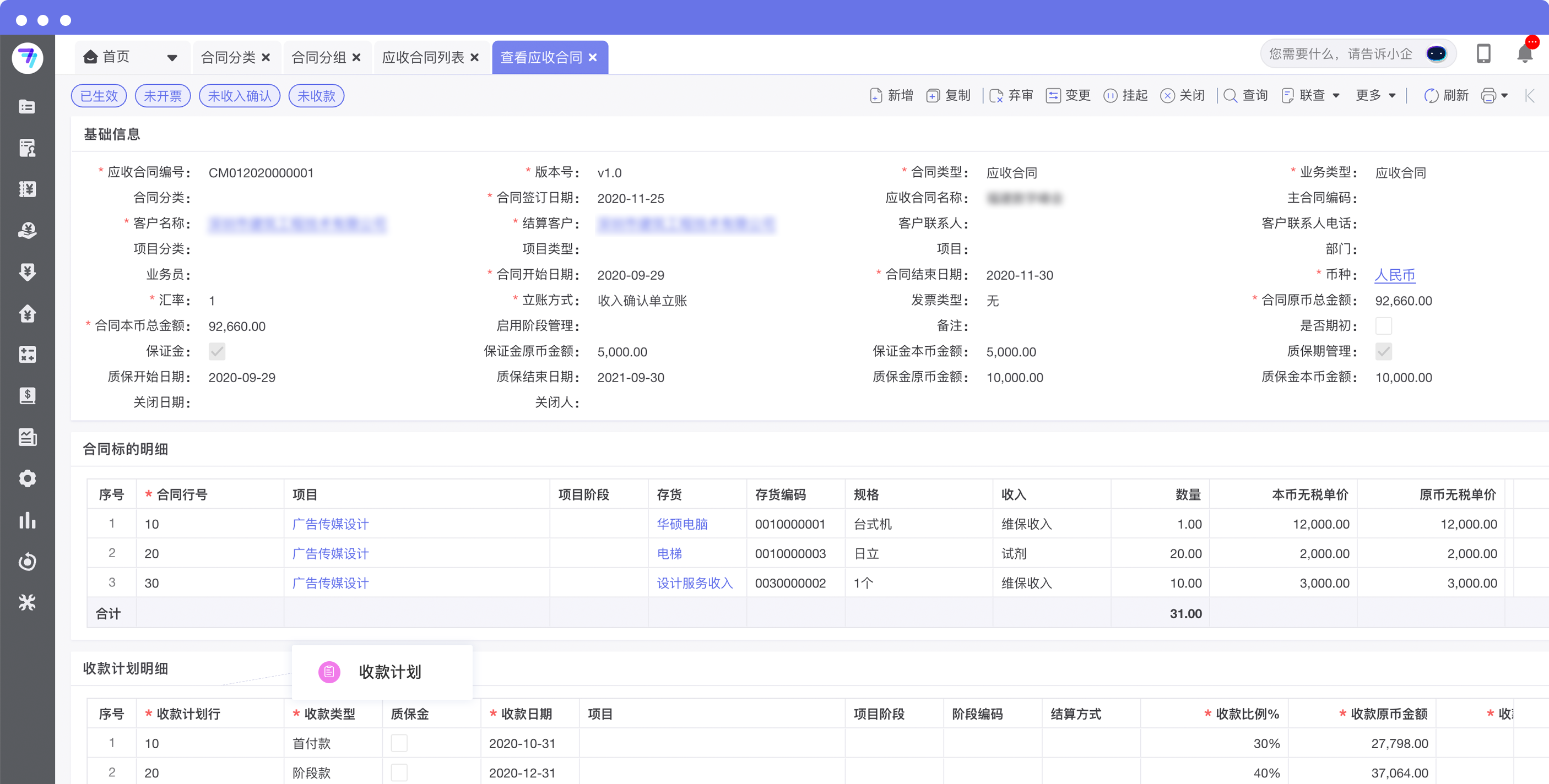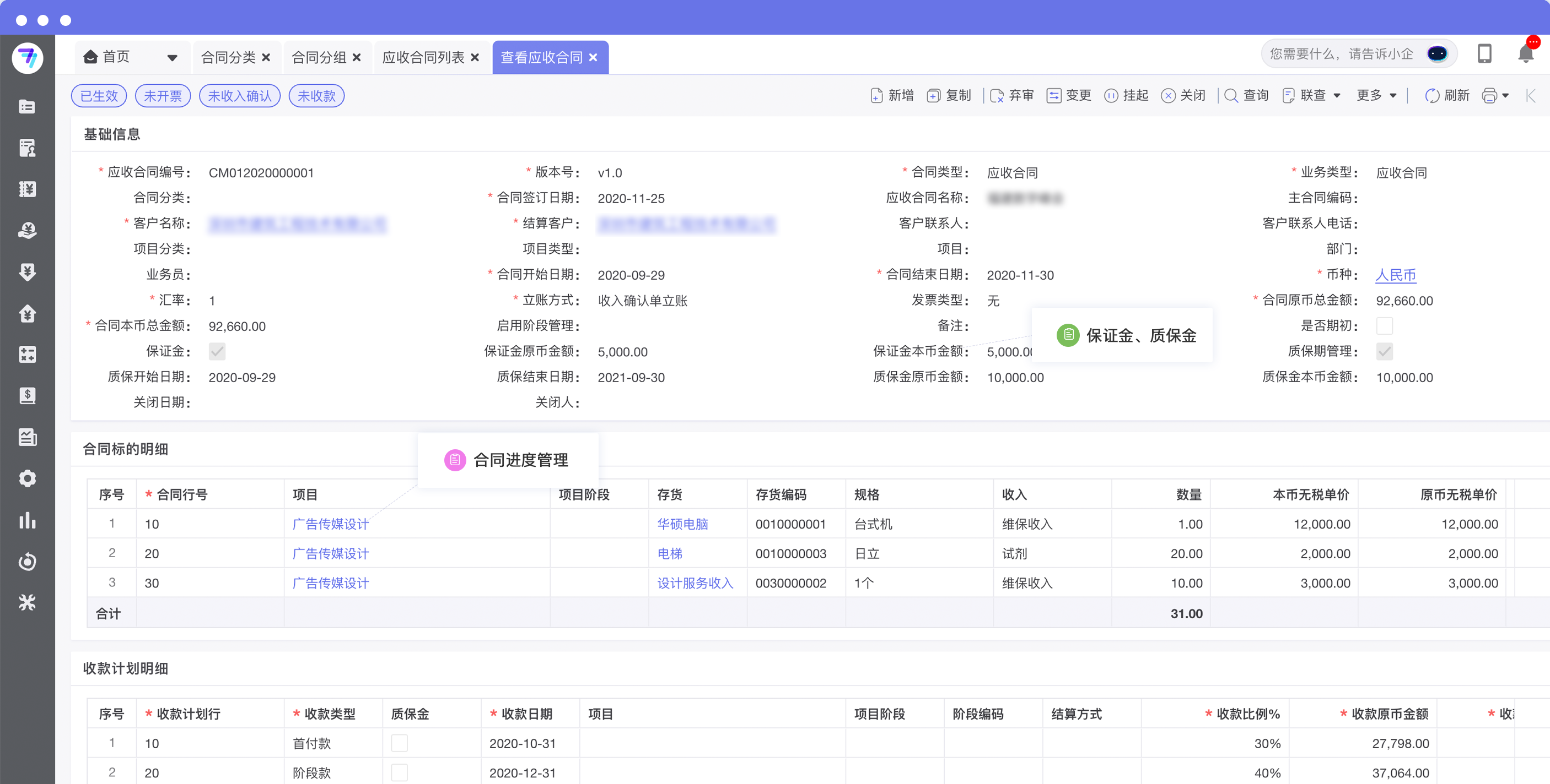 合同收付款计划复杂,难以跟踪实际执行情况,异常情况无法及时预警?
